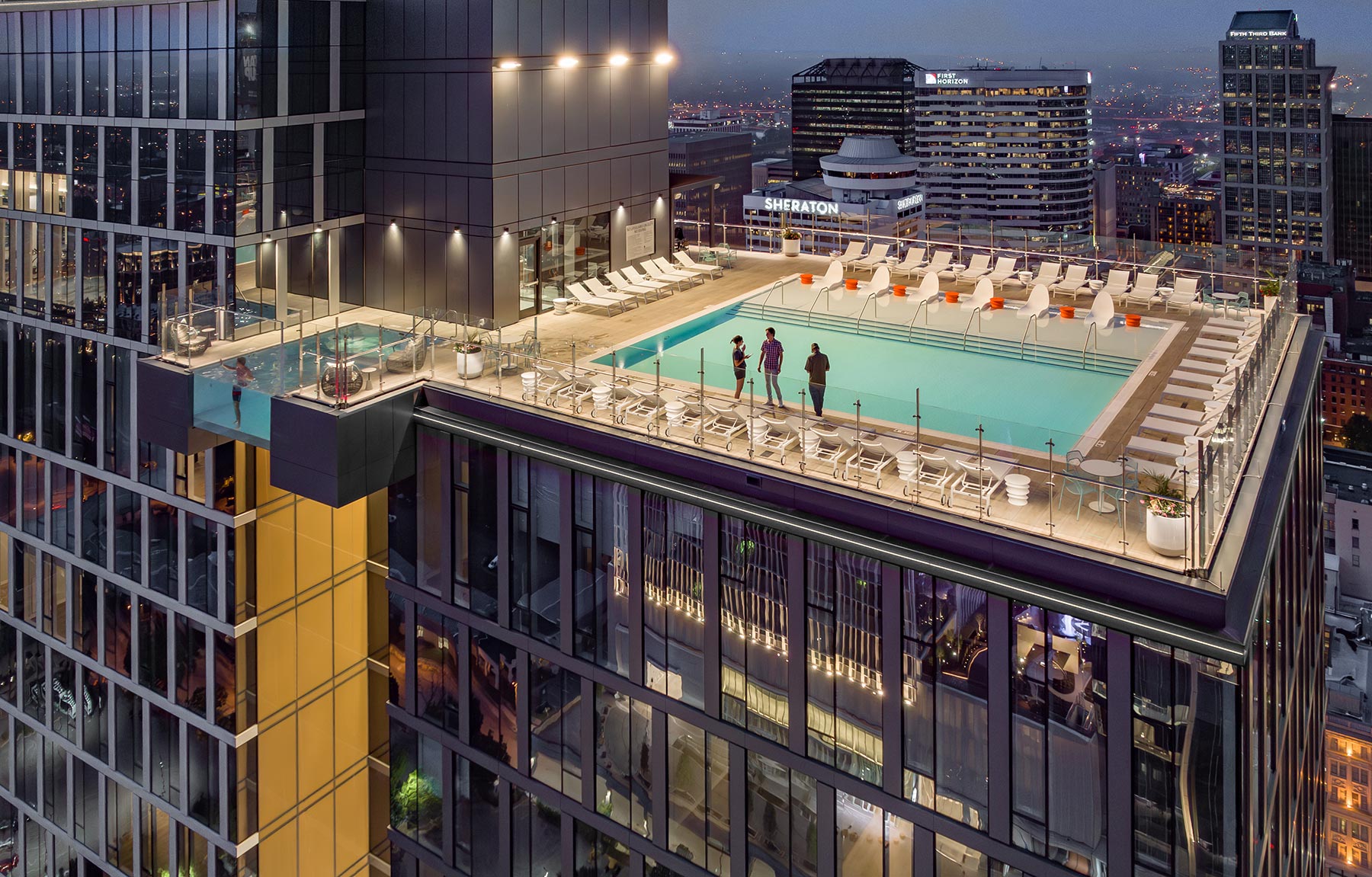 This tower however has as much beauty as it has brawn, with panoramic floor-to-ceiling glass and stunning shared alcoves which is the tower’s namesake, creating both beautiful and intimate spaces. The Alcove stands 416 feet tall, offers 356 units; and is packed with exclusive luxury amenities such as rooftop Nashville’s only cantilevered fully clear pool nearly 400 feet above street level.