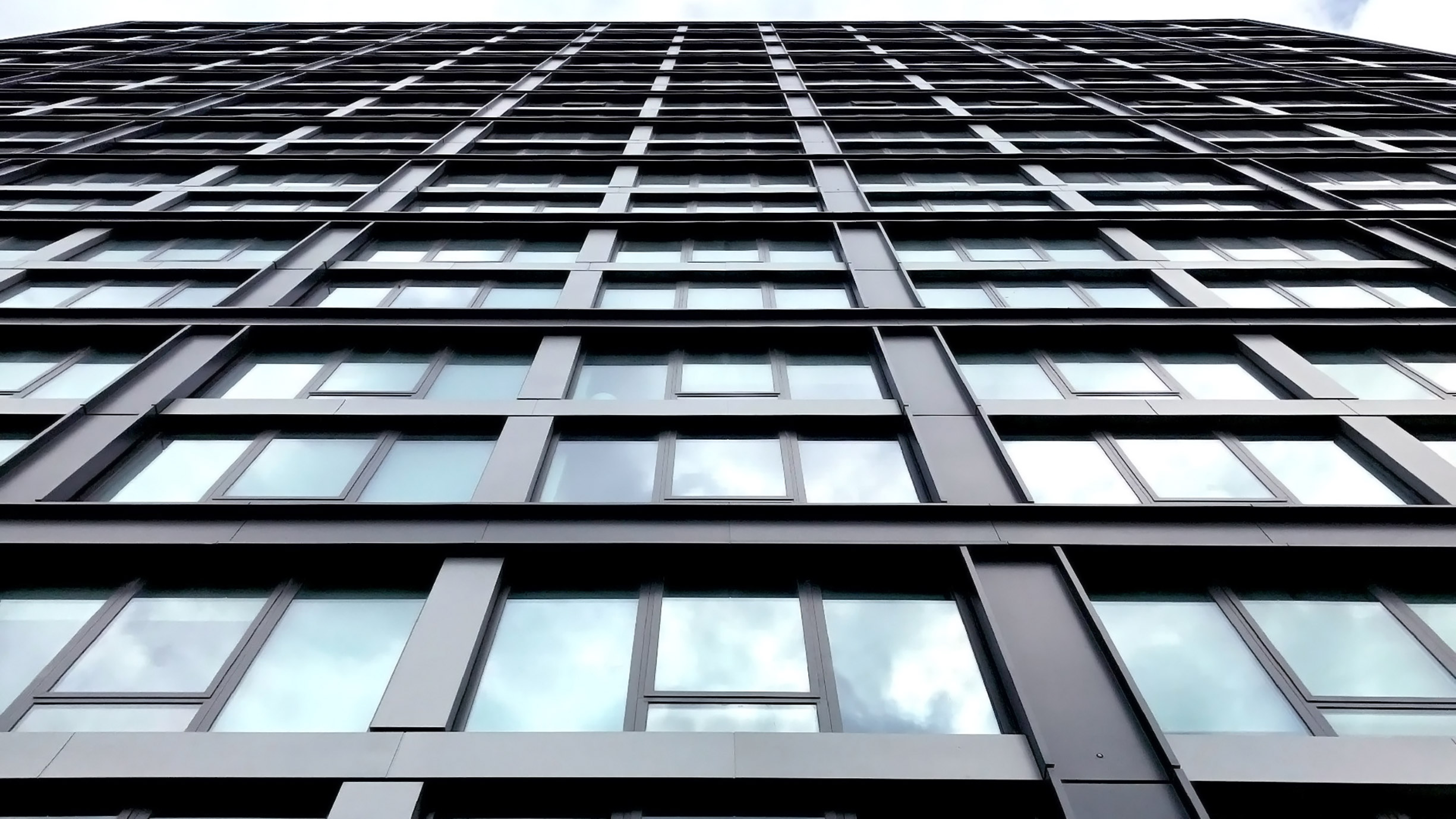 The tower is clad in interwoven metal channels that recall the slender I-beams rising up Mies van der Rohe’s Lake Shore Drive Apartments. A secondary grid of metal panels subdivides the glass bays of floor-to-ceiling windows, creating a composition that echoes the façades of nearby warehouses and former manufacturing buildings.