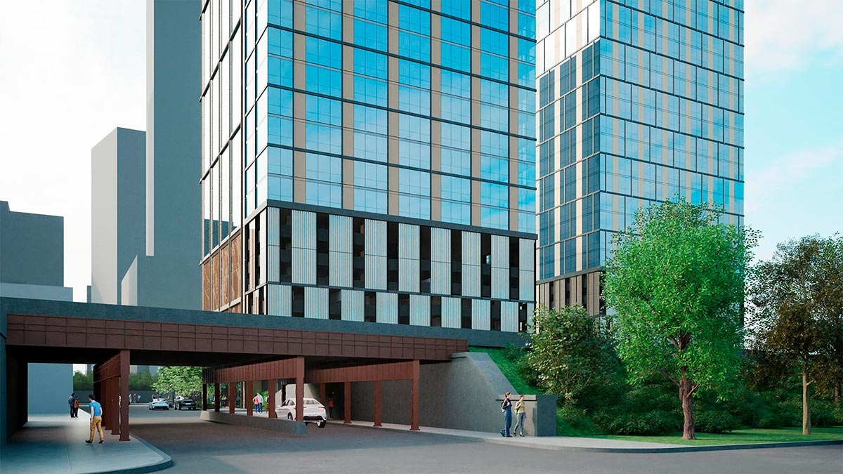 Conceived with a modern architectural vision, the towers will feature a striking combination of floor-to-ceiling windows, metal paneling, and architectural mesh to enhance the parking podium. The ground level is thoughtfully designed to engage with the surrounding urban environment, featuring residential lobbies facing N. Elizabeth St and retail spaces at the southeastern corners.